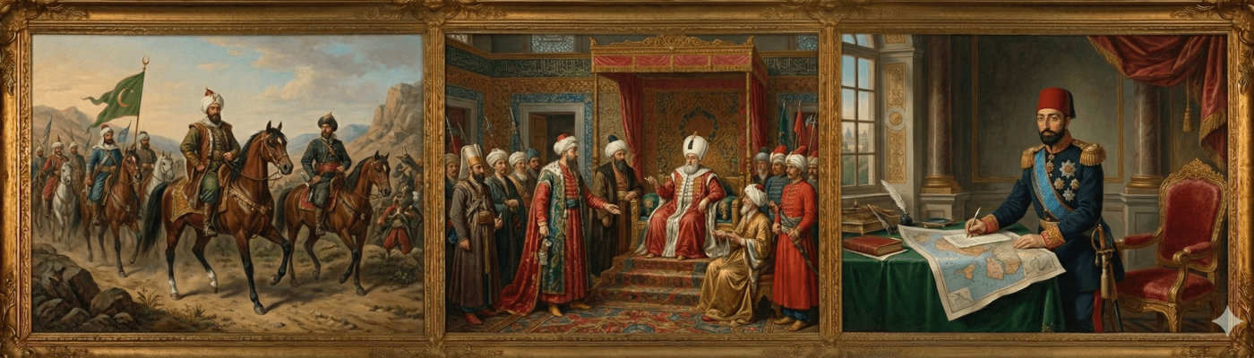 Османска династија је током векова своје владавине дала 36 султана. Османско царство са другом династијом се није могло замислити. Султан је арапска титула, хан турско-монголска, а шах персијска. Све их је обједињавао владар Османског царства. Султан је издавао акте (берате) о постављењу на све положаје, у којима се одређује функција и надокнада. Био је врховни командант војске, који је носећи заставу пророка Мухамеда (оснивача ислама) лично предводио ратни поход, или је командовање војском поверио својим везирима.