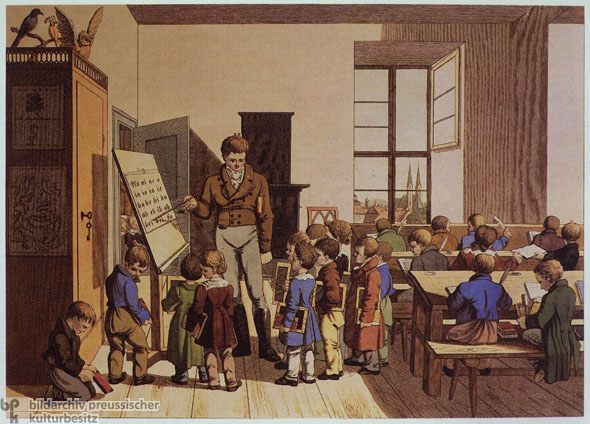 „[…] Од доба просвећености у 18. веку друштво је почело лагано да прихвата став да би сви, па чак и најсиромашнији сељаци, требало да стекну неку врсту образовања или макар писменост. У земљама које су биле на путу демократије, у којима је непрестано повећаван проценат становништва који је могао активно да узме учешће у политичком животу, брига за oбразовање постала је кључно питање. Разликовала су се мишљења о томе да ли би писменост требало да буде услов за гласачко право, али већина интелектуалаца је до средине 19. века била јединствена у томе да би, уз давање гласачког права, друштво морало својим грађанима да обезбеди описмењавање, или виши степен образовања. […] Деветнаести век је, стога, значајан у историји образовања, јер је у ово доба почео развој система државног образовања у већини европских земаља.