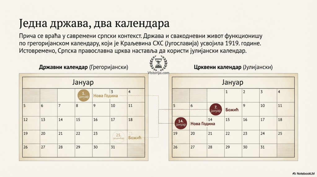 Са настанком југословенске краљевине, након Првог светског рата, у Србији је држава прихватила грегоријански календар, назван по поглавару католичке цркве.