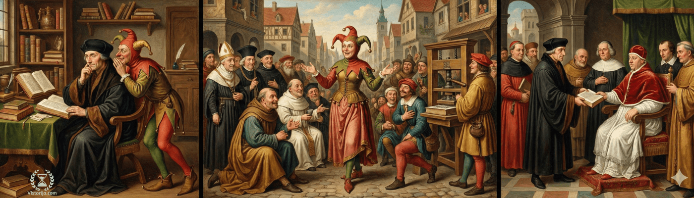 Еразмова Похвала лудости је објављена 1511. године. Католичка црква ју је после неколико месеци ставила на попис забрањених књига. Похвалом лудости Еразмо је критиковао и најмоћније у друштву свога времена.