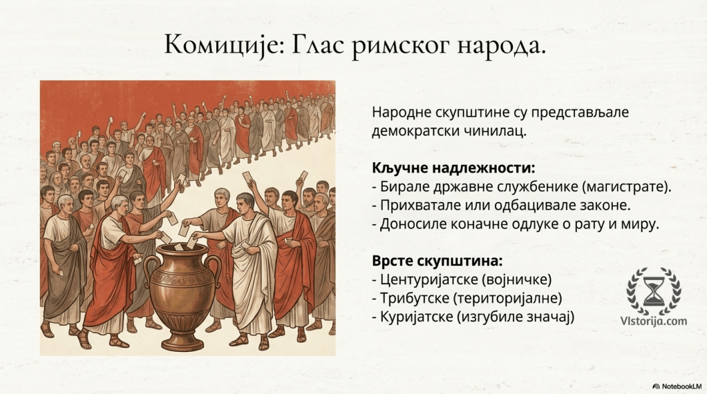 - центуријатске (војничке, у којима је свака војна јединица, центурија, имала један глас),