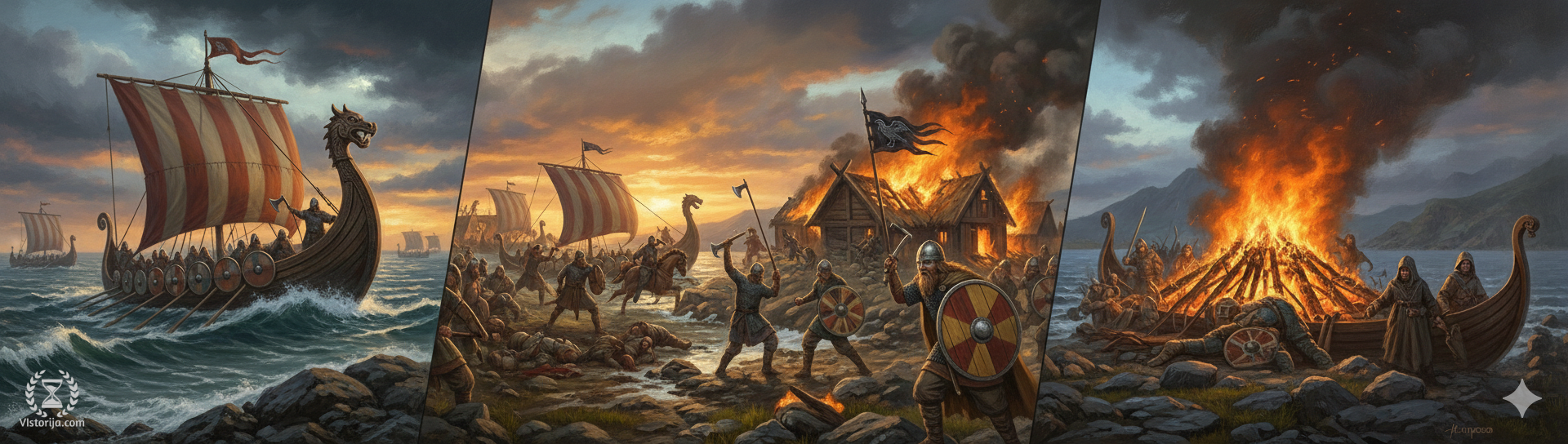 Откријте мрачни свет викиншких погребних ритуала! Сазнајте како су покојнике спаљивали или сахрањивали у гробним хумкама, често у пратњи чамаца, оружја, накита и животиња. Прочитајте и стравичан извештај Ибн Фадлана о спаљивању руског главара, које је укључивало жртвовање робиње и праћено је пијанком. Истражите њихове представе о загробном животу, од тужног подземног царства Хела до славне Валхале.… Read More Викинзи и смрт