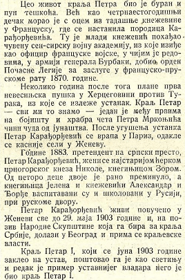 Настала је необична ситуација. Док су појединци у земљи размишљали о његовом уклањању из права наслеђа, одређени кругови у иностранству (Аустро-Угарска, Немачка) видели су га као будућег краља Србије.“