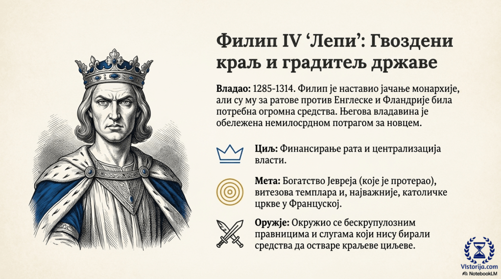 […] темплара и католичке цркве. Протерао је Јевреје и распустио витешки ред темплара, да би се дочепао њихове имовине и ослободио дуга код […]