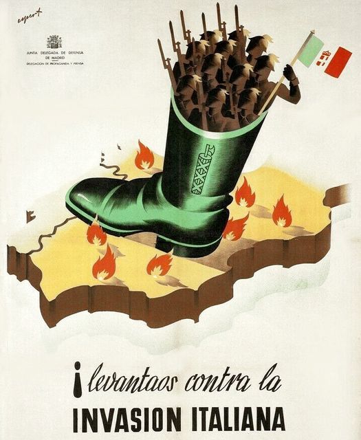 „Италијанска интервенција је, дакле, од почетка брза и масивна. Затим ће, током рата, бити учињено све да се помогне Франку и осигура његова победа. Фашистички шефови су заправо сматрали националистички подухват за личну ствар. Мусолини у акцији у Шпанији види прилику да вежба своје таленте војног заповедника. Он сазива бројне војне конференције, даје наредбе италијанској морнарици да „подморнице спрече долазак бродова у црвене луке“. Његов син Бруно ићи ће да вежба своје авијатичарске таленте на Балеарима.