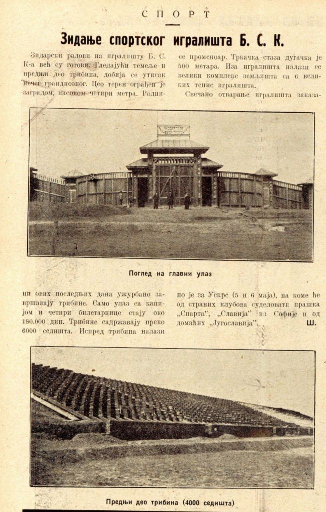 Интересовање за дерби утакмицу Б.С.К. – „Југославија“, која је одржана данас у Београду било је изванредно живо у свим спортским скопљанским круговима. И један и други клуб имају на југу својих одушевљених присталица и навијача, који су целе недеље очекивали овај значајан сусрет. Срећна новина коју је „Политика“ увела да даје извештаје својим читаоцима у целој земљи као и данашње давање преко београдске радио станице тока овог најважнијег спортског догађаја сезоне, примљена је са великим одушевљењем од свих спортиста.