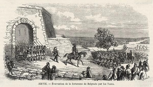 „Портиним Ферманом (10. април 1867), насловљеним на кнеза Михаила, управа над утврђењима Шапца, Београда, Смедерева и Кладова уступљена је кнезу и српској војсци, с тим да се на њиховим бедемима, поред српске, вије и турска застава. Једино ограничење односило се на то да преправке утврђења нису могле да се врше без дозволе Порте. Ферман је прочитан на Калемегдану 18. априла уз велику свечаност, а око 11 сати 6. маја 1867. године последњи турски војник је напустио Србију.“