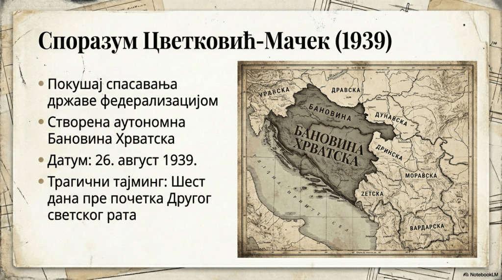 Диктаторске склоности, проњемачка и проиталијанска оријентација у спољној по-литици, због чега је био све мање прихватљив у политичким круговима демократских земаља Запада (Велика Британија и Француска), али и неспремност да разговара са Хрватима, учинили су Милана Стојадиновића неподобним да и даље руководи Министарским саветом Краљевине Југославије. Због тога је почетком фебруара 1939. године кнез Павле, уз подршку групе министара у влади, изазвао кризу, а затим и пад трећег кабинета премијера Стојадиновића. Министри Мехмед Спахо, Миха Крек, Франц Сној, Џафер Куле-новић и Драгиша Цветковић поднијели су оставке 3. фебруара, под оправдањем да „влада у садашњем саставу представља запреку“ за рјешење хрватског питања. Притјеран уза зид, Милан Стојадиновић је 4. фебруара понудио оставку, коју је кнез Павле одмах уважио. У вечерњим сатима истог дана, мандат за састав нове југословенске владе повјерен је дотадашњем министру социјалне политике и народног здравља Драгиши Цветковићу. […] Милан Стојадиновић је био изненађен оваквим развојем догађаја, осјећао се као да му је кнез Павле „забио нож у леђа“ и истицао да је за новог предсједника краљевске впаде одабран „најгори и најслабији члан“ његовог кабинета. У београдској јавности је оставка Милана Стојадиновића дочекана са симпатијама, пошто је његова сервилност према нацистима и срдачност према Трећем рајху била одбојна још увијек изразито антињемачким осјећајима српског народа. Нови премијер је, истог дана, разговарао са старим и поручио му да пренесе „својим ближим пријатељима да не праве глупости“. Падом Милана Стојадиновића створени су предуслови да отпочну преговори између власти у Београду и хрватског политичког вођства како би се превладала вишегодишња унутрашња криза, која је представљала посљедицу неријешеног хрватског питања.“