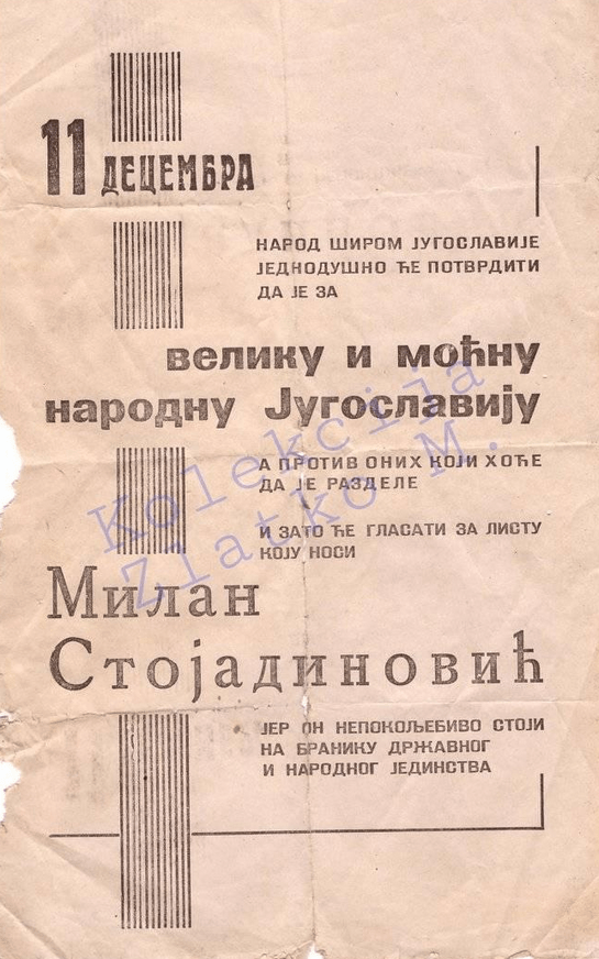 „Изборна побједа владине листе остварена је захваљујући притисцима државних органа и сузбијањем слободне воље бирача. Осим тога, разлика је остварена и захваљујући томе што су југословенски Нијемци, по диктату из Берлина, гласали за листу Милана Стојадиновића.“