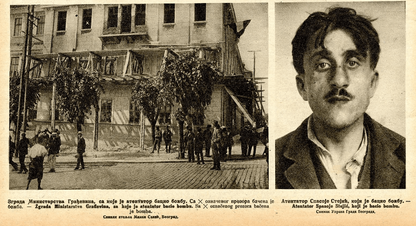 „Сутрадан по изгласавању Видовданског устова, 29. јуна 1921. године молерски радник и српски добровољац са ратишта у Добруци Спасоје Стејић извршио је неуспјешни атентат на регента Александра, који се враћао из Народне скупштине, гдје је положио заклетву на тек усвојени највиши конститутивни акт Краљевине Срба, Хрвата и Словенаца. Атентатор је бацио бомбу са скеле у нивоу трећег спрата зграде Министарства грађевина у изградњи, која се заплела у жице електричног вода и експлодирала у ваздуху, не повриједивши регента, али ранивши деветоро грађана. Спасоје Стејић је ухапшен и осуђен на казну смрти, која је, милошћу краљевом, замијењена казном од 20 година затвора. Не пуних мјесец дана касније 21. јула 1921. године столарски радник Алија Алијагић у Делницама је са два револверска метка убио тада већ бившег министра унутрашњих дјела Милорада Драшковића, у жељи да изврши одмазду због Обзнане. Бивши министар се у Горском Котару налазио на одмору са породицом, а уз атентатора су били Рудолф Херцигоња и Родољуб Чолаковић, чланови комунистичке терористичке организације Црвена правда. Алија Алијагић је осуђен на казну смрти вјешањем. Послије ових терористичких аката, 2. августа 1921. године донијет је Закон о заштити јавне безбедности и поретка у држави, којим је свака писана или усмена комунистичка пропаганда, усмјерена на промјену политичког и друштвеног система, сматрана злочином. Због бојазни да би се такав пропис могао користити и против других партија, против закона су иступиле СПС, ЈРС и ЈСДС. Од 244 посланика присутних у Народној скупштини, за закон је гласало 190, а против 54. За примјену закона било је задужено Одељење за државну заштиту Министарства унутрашњих дјела. Након усвајања закона, поништени су мандати комунистичких посланика у Народној скупштини (осим четворице, који су претходно иступили из комунистичког по-спаничког клуба), а југословенски комунисти су наставили да дјелују у дубокој илегали.“