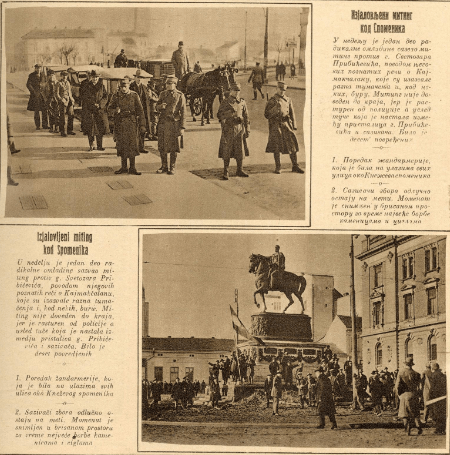„Све је кулминирало 1. децембра 1928. године, када је требало обиљежити десет година од југословенског уједињења. Вође СДК-а [Сељачко демократске коалиције, коју су чинили Хрватска сељачка странка и самостална демократска странка Светозара Прибићевића] су саопштиле да та политичка групација неће учествовати у прослави. Умјесто славља, у Загребу је дошло до масовних протеста. На Загребачкој катедрали су истакнуте три црне заставе и натпис „Живјела слободна Хрватска“ Када су полицајци привели одговорне за тај чин, на њих је испаљено неколико хитаца. Полиција је узвратила ватром и убила једног, а ранила неколико демонстраната, што је додатно разјарило масу. Протести су настављени током вечери и наредне ноћи, а затим је отпочео и штрајк студената Свеучилишта у Загребу. Смијењен је велики жупан Загребачке области Петар Зрелец, а на његово мјесто је постављен пуковник Војин Максимовић. Иако је Владко Мачек процјењивао да ће се „цијела ситуација преокренути у пожар, који ће прогутати овај деспотски режим“, немири се нису проширили изван Загреба и нису захватили масе хрватског сељаштва.“