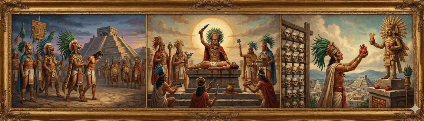 Један од главних аргумената праведности рата шпанских освајача против америчких староседелаца било је њихово жртвовање људи. Како је то изгледало описао је Дијего Дуран у делу названом Историја Индија, Нове Шпаније и копнених острва. Изводе преноси Цветан Тодоров у својој књизи Освајање Америке, питање другога.