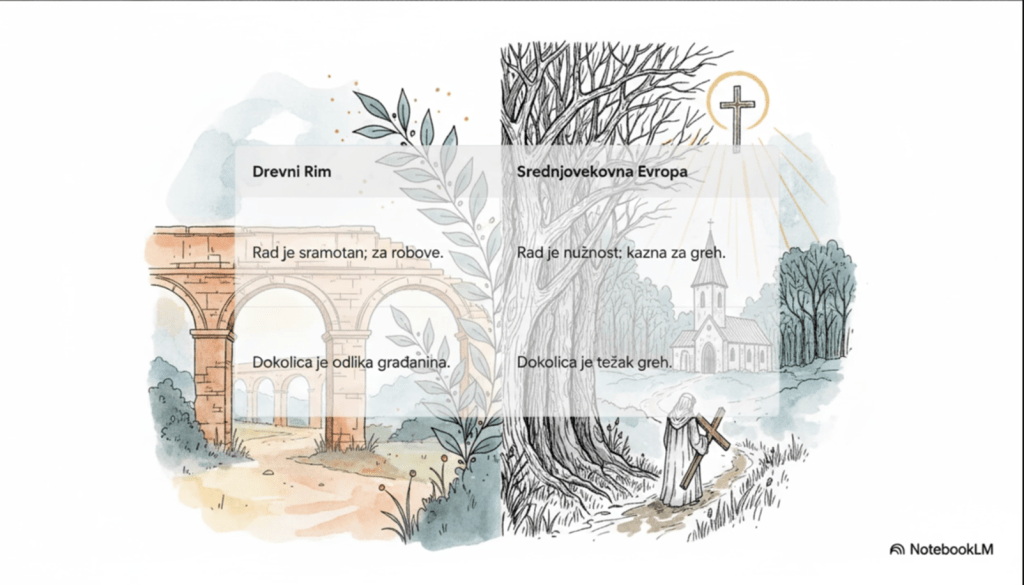„Средњовековље је од самог почетка одредило свој однос према раду и богатству, који је био сасвим различит од односа какав је постојао у свету антике. (…)
