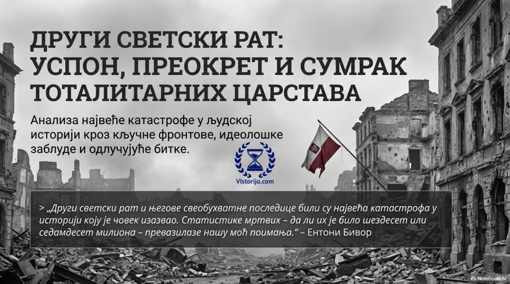 „У Другом светском рату на идеолошком плану испољио се сукоб три идеологије: грађанске демократије, фашизма и комунизма, тако да се тај рат разликовао од онога који је почео 1914. и био обележен национализмом.“