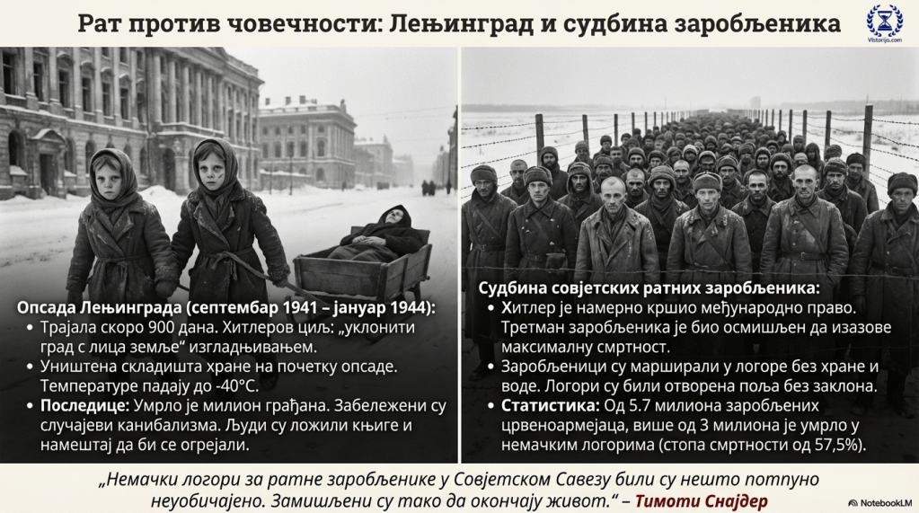 Опсада Лењинграда (Санкт-Петерсбурга) је трајала око 900 дана од септембра 1941. до јануара 1944. године. Лењинград је током опсаде био изолован од остатка земље. Хитлеров циљ је био да град примора на предају изгладњивањем. Страдало је милион грађана.