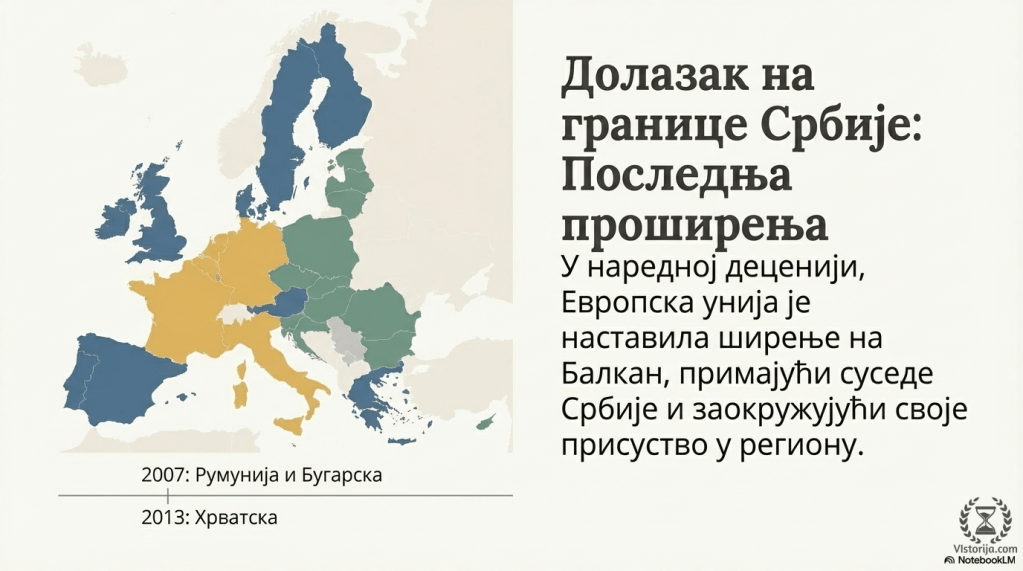 Након тога била су још два проширења којима су у Европску унију примани суседи Србије – 2007. Румунија и Бугарска, а 2013. Хрватска.