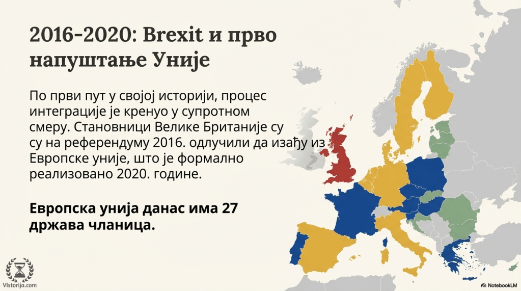 Године 2016. становници Велике Британије су на референдуму одлучили да изађу из Европске уније, што је формално реализовано 2020. године. Тако Европска унија тренутно има 27 држава чланица.