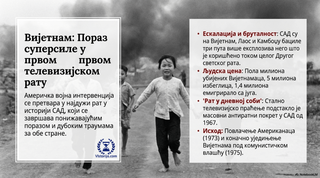 Ово је био најдужи рат у којем су САД икада учествовале. Американци су због идеолошких предрасуда и уверења да је комунизам слаб и да нема подршку, били убеђени да ће победа бити лака и брза. Рат је све више личио на рововски, сличан Првом светском рату. Гутао је војнике, а мало шта се померало. Убијено је пола милиона Вијетнамаца, око 100 000 рањено, остало је 5 милиона избеглица, а око 1,4 милиона је емигрирало са југа, бежећи од комунистичких власти (од укупно 16-17 милиона становника). Половина их се населила у САД. Био је ово први рат са сталним телевизијским праћењем. Од 1967. године у Америци су почели масовни антиратни митинзи и студентски немири тим поводом.