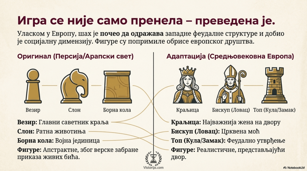 Игра шах, прилагођена европском хришћанском друштву, нудила је савршен приказ друштвеног поретка у којем се од сваког очекивало да тачно зна своје место.