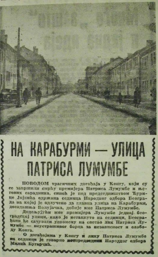 Демонстрације због убиства Патриса Лумумбе одржане су у 70 градова, а насилне су биле само у Каиру и Београду, где је демолирана амбасада Белгије и повређено 80 људи. Као трајни знак солидарности са Африканцима, у Београду је остао студентски дом на Звездари који се зове по Патрису Лумумби.
