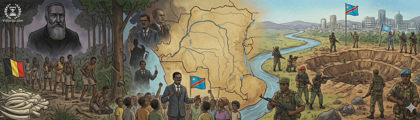 „Јануара 1960. године у Брисел је позван Патрис Лумумба, поштански службеник из Белгијског Конга, вођа тамошњег ослободилачког покрета. Саопштена му је неочекивана одлука метрополе да ће признати независност колоније 30. јуна 1960. године. Додуше, план је био да Белгијанци задрже утицај у влади и војсци, као и да белгијским фирмама остану рудници угља. Ипак, није све ишло тако глатко. Прво је дошло до побуне у војсци против белгијских официра, а затим су почели и напади на белгијске цивиле и њихову имовину, што је изазвало реке избеглица. Земља је тонула у хаос.