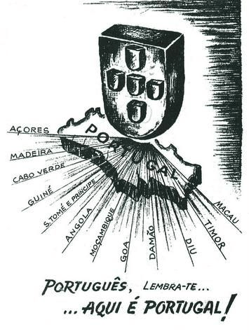 „Португалци, запамтите… овде је Португалија!“ – португалска илустрација (око 1930. године)„Сунце слободе над Анголом“ – пропагандни плакат из СССР, 1976. године