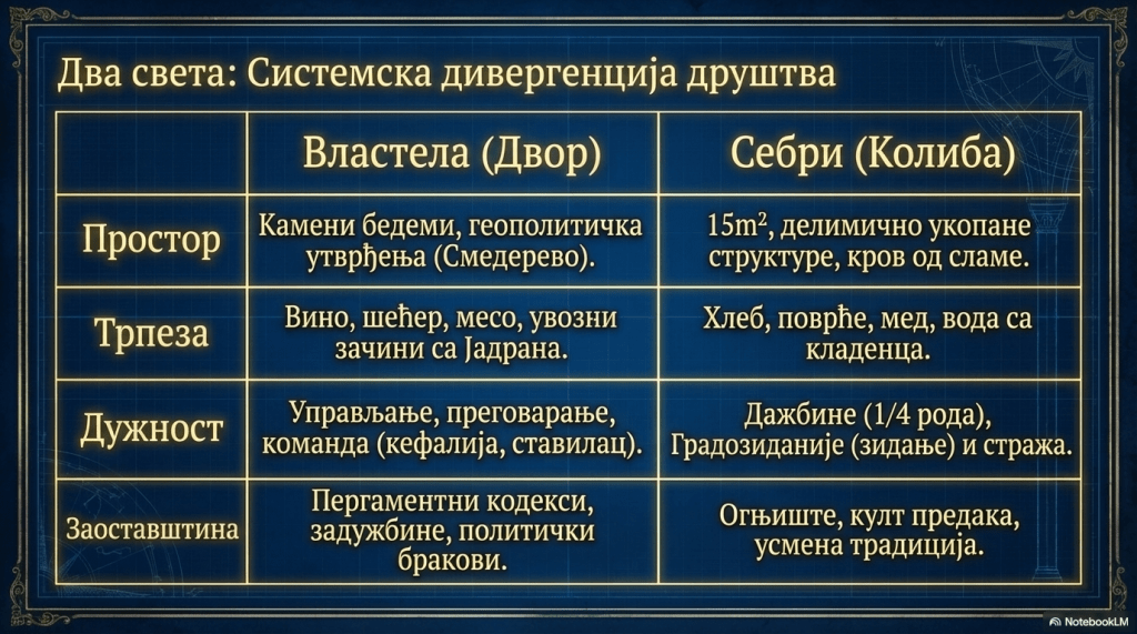 „Расути по безбројним селима различитих типова и величина, произвођачи хране били су најбројнији социјални сталеж. Међутим, наша сазнања о животу тих људи у великој су несразмери са њиховим значајем у средњовековном друштву посматраном у целини. Недостатак историјских сведочанстава и скромни археолошки налази дуго су усмеравали пажњу истраживача ка изучавању виших класа на оновременој друштвеној лествици, које су за потомство оставиле обимну писану грађу и богатија артефакта. О животу, најчешће неписмених, житеља села савременици ретко шта казују, осим јасног означавања фискалних обавеза или законске регулативе њиховог друштвеног статуса. Новије време драгоцена сведочанства пружила су археолошка истраживања, али то су тек први резултати који указују на правце даљих трагања.“