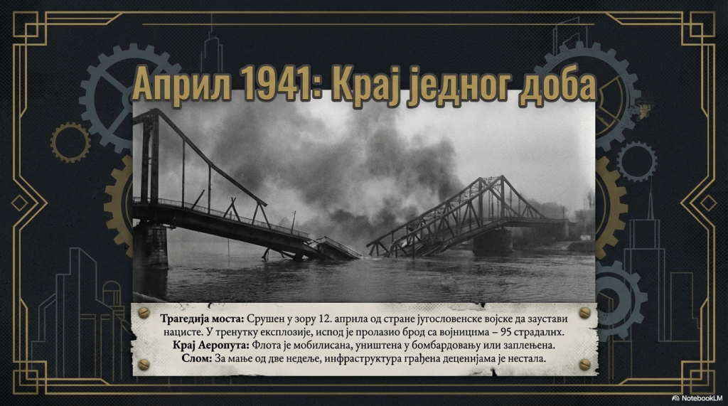 Мост за којег је на отварању министар рекао да ће трајати столећима, срушен је у Другом светском рату. Потрајао је само мало дуже него што је грађен – мање од шест и по година, после четири и по године изградње. Опет је бурна историја оставила разарајуће последице на Београд.