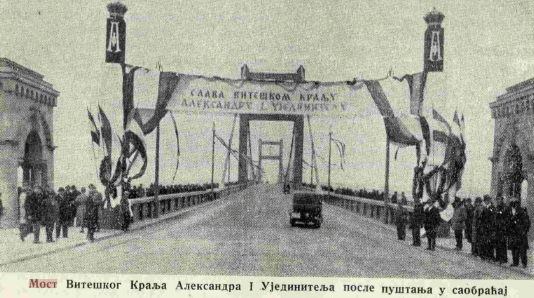 „Овај колос од гвожђа и бетона, последњи израз технике, којом има да послужи мирним, културним и економским интересима нашега народа, сазидан је, као и цела Југославија, на крви читавих генерација, које су замисли коју мост изражава дали своје животе, пролили своју мученичку крв. Сваки килограм гвожђа, сваки килограм бетона претставља толико стотина и хиљаде килограма најплеменитије крви нашега народа.“