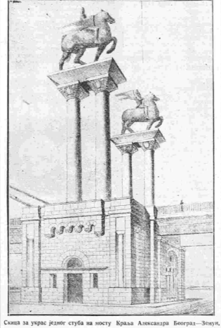 „Постојао је и пројект да се на Земунски мост поставе фигуре Мештровићевих „Коњаника“. Да ли ће се тај пројект остварити, још нам није познато, али ово питање је изазвало познате прошлогодишње дискусије међу уметничким светом. Несумњиво је да би такав украс само допринео монументалности моста, али ми се овде ограничавамо на социјалну страну овога питања, а не на уметничку.