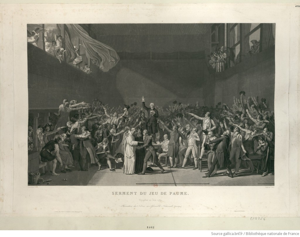 Када су наишли на затворена врата просторије где су заседали, прешли су у суседну просторију за тенис (тада се играо само у затвореном). Почели су им прилазити либерални племићи и већина свештенства. Краљ Луј XVI се тада изненада предао и позвао преостале представнике племства и свештенства да се придруже јединственом законодавном телу које је он званично признао. Тако је Скупштина три сталежа постала Народна скупштина.