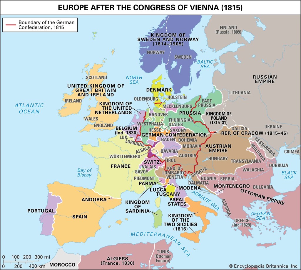 - Да ли је у Европи након Бечког конгреса било више или мање држава него данас?