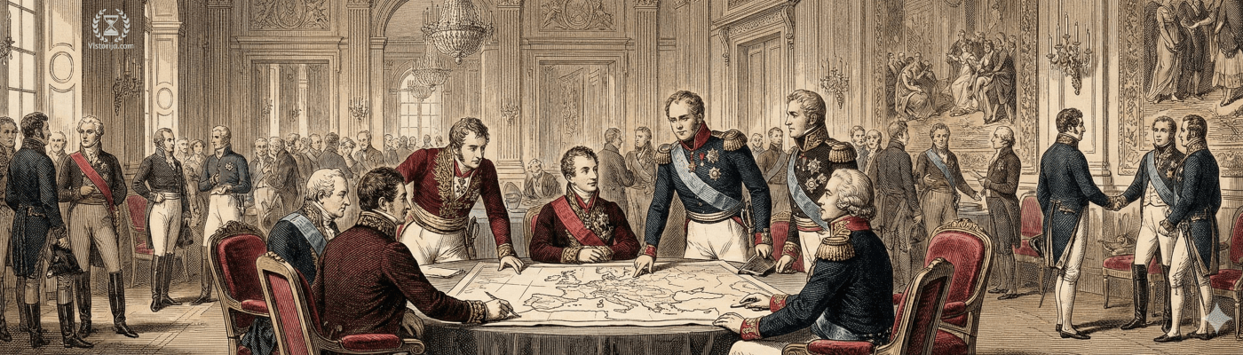 У октобру 1814. године у Бечу су се на Конгресу окупили представници свих европских земаља осим Османског царства. Са 216 делегата то је био највећи међународни дипломатски скуп у историји. Сви његови учесници били су противници револуције, покушали су у што већој мери да обнове старе режиме. Пошто то више није било могуће у потпуности, тражен је неки компромис између жељене ситуације из прошлости и постојећег стања насталог као последица револуција. Закључено је да је само у сталној равнотежи револуције и реакције могућ прогрес. Тако је победничка реакција на Бечком конгресу принцип легитимизма допунила начелом равнотеже, који се пре свега односи на односе између држава.