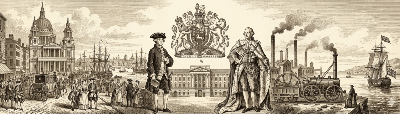 У периоду владавине четири Џорџа, најзначајнији догађаји су били Седмогодишњи рат (1756-1763), када су Енглези Французима преотели територије у Америци и Индији и Рат за независност САД (1775-1783), када су се осамосталиле америчке колоније у Северној Америци. Чињеница да је Француска имала велике копнене границе и традицију територијалног ширења у Европи имала је за последицу да се њено становништво нерадо и у малом броју исељавало преко мора, па стога колонијална експанзија за њу никада није била искључиви и преовлађујући интерес какав је била за многе Енглезе. Француска је имала три пута више становника од Британије, па и већу војску и порески потенцијал.