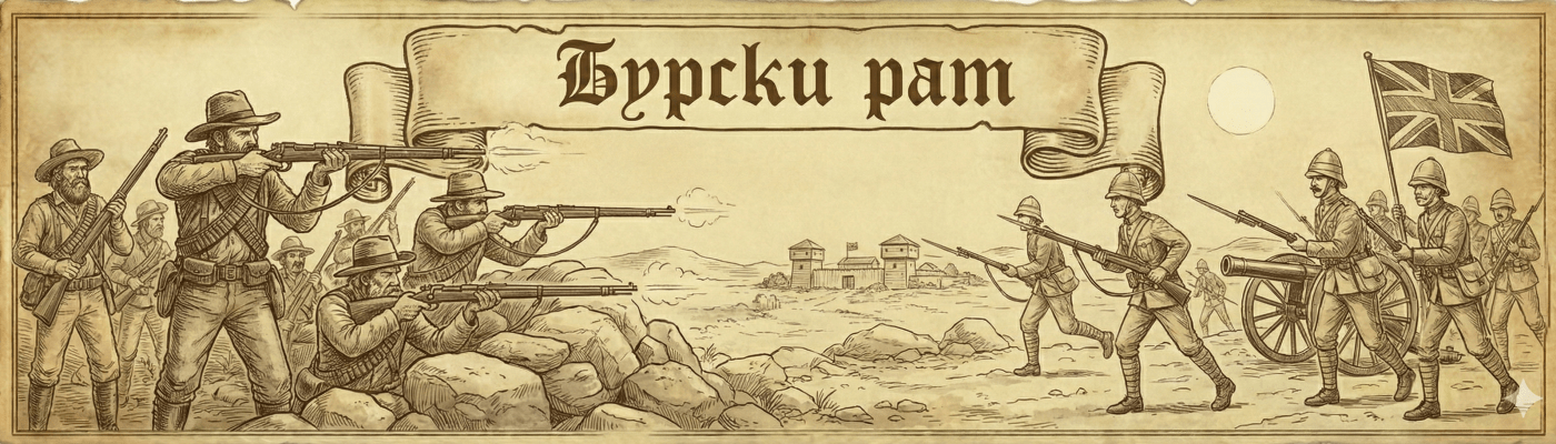 „Главни узрок Бурског рата је било откриће богатих рудника злата, који су изненада ту сиромашну област претворили у потенцијално најјачу тачку афричког континента. Импозантна британска војска је после првих пораза, успела формално да припоји ове две области 1900. године. Герилски рат, који је анексијом био подстакнут, изазвао је сурову британску одмазду. Паљене су африканерске фарме, стока је убијана, уништавана је укупна имовина. Створени су тада и први концетрациони логори (додуше, неки историчари тврде да су први концетрациони логори направљени на Куби 1896) у које су интернирани цивили за које се сумњало да подржавају непријатеље. Рачуна се да је у њима било затворено око 160.000 Африканера, од којих је око 30.000 ту и завршило живот.
