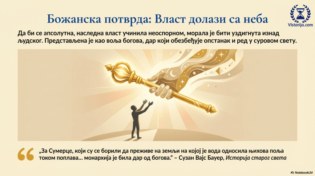 За Сумерце, који су се борили да преживе на земљи на којој је вода односила њихова поља током поплава или се потпуно повлачила остављајући усеве да буквално сагоре на сунцу, монархија је била дар од богова.“