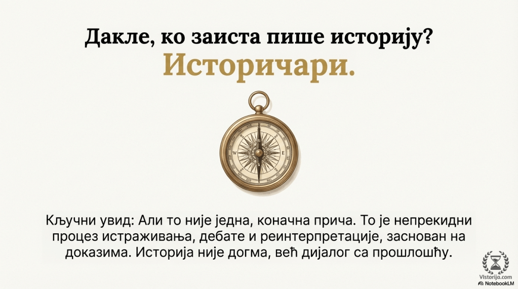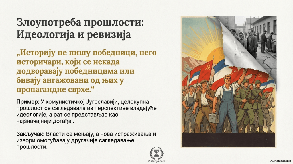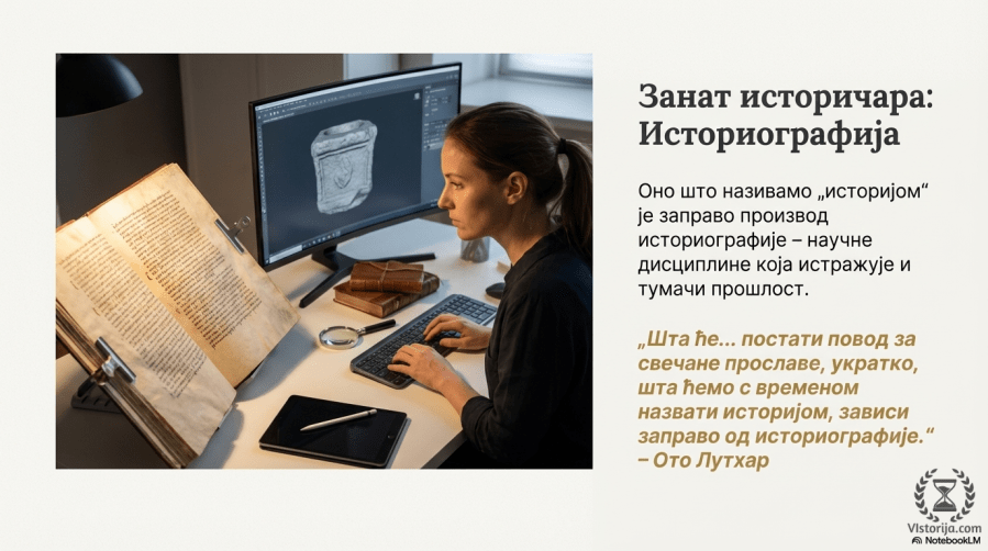 „Шта од те прошлости остаје у нашој свести, шта ће ући у историјске расправе и уџбенике, шта ће постати повод за свечане прославе, укратко, шта ћемо с временом назвати историјом, зависи заправо од историографије.“