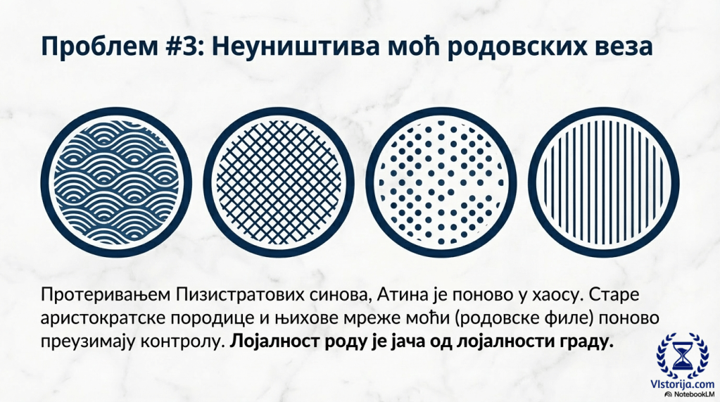 Атину су после протеривања тирана поново захватиле жестоке политичке борбе између еупатрида и демоса. Немире је окончао законодавац Клистен. Он је 508. године пре наше ере спровео реформе које су водиле даљем успостављању демократије.