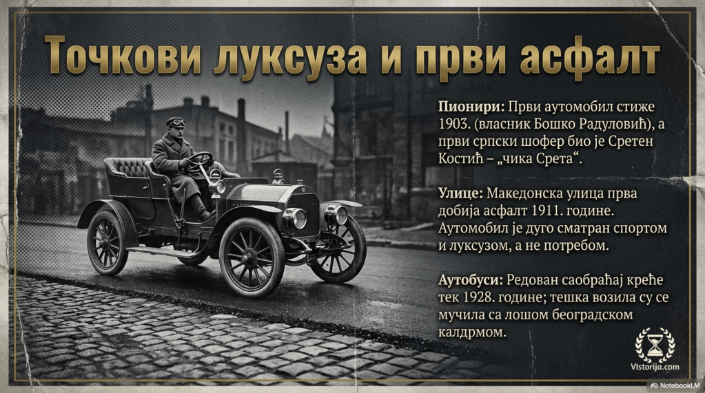 „Занимљиво је да је у Београду и Србији асфалт добила прво Македонска улица, приликом реконструкције 1911. године. Затим Скопљанска (данашња Нушићева), па Кнез-Михаилова.“