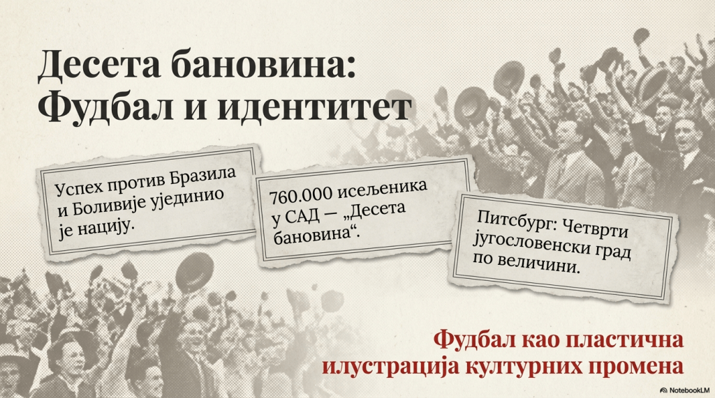 Фудбал је, поред тога, био показатељ колико је држава постала активни чинилац трансконтинетналног национализма. У новим државама југоисточне Европе дијаспора, која је представаљала глобално раширени национални идентитет, била је предмет посебне пажње у процесу политичког одлучивања. Како је у САД живело око 760.000 усељеника југословенског порекла, о њима се говорило као о „десетој бановини“ Југославије, а о Питсбургу као о четвртом по величини југословенском граду“