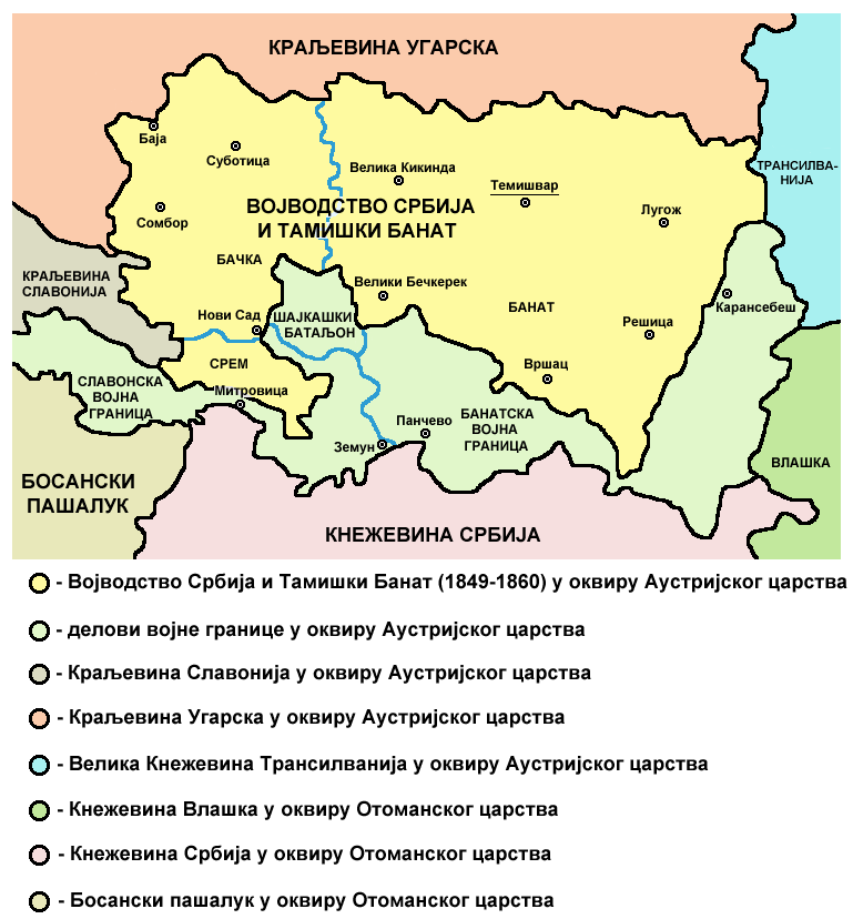Војводство Србија и Тамишки Банат прогласио је аустријски цар као награду Србима за помоћ током револуције, а још више да би наштетио Мађарима. Војводство је било потчињено аустријској влади, изузето из надлежности угарских власти. Обухватало је већи део Баната, Бачке и источни Срем. Имало је милион и по становника. Срби су били у мањини, са 22,5% становништва. Румуна је било 28%, Немаца 23%, Мађара 15,5%, осталих 11%. Седиште војводства је било у Темишвару, у којем су Срби били у мањини. Војна крајина, где су Срби уживали повластице у замену за војну службу, остала је изван Војводства (укинута је 1881. године). Ово је био први и једини пут да је остварена територијална аутономија Срба унутар Хабзбуршке монархије. Војвода је био сам цар, који је војводство укинуо крајем 1860. године, након пораза Аустрије у Италији и незадовољства Мађара. Следећи пут Војводина се јавља тек после Другог светског рата, као аутономна покрајина Србије, што је остала до данас.