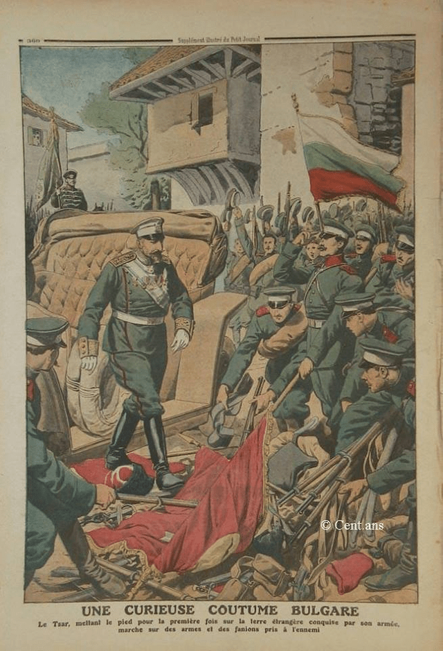 Француска илустрација (новембра 1912. године) дочека српског краља у ослобођеном градуУ друштву француских генерала Срби прослављају ослобађање Скопља (илустрација из децембра 1912. године)Краљ Никола са рањеницима (илустрација из новембра 1912. године)