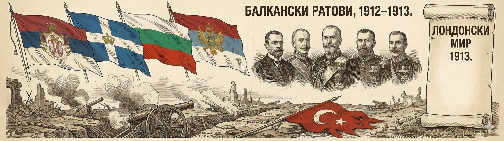 Балкански савез (Србија, Бугарска, Грчка и Црна Гора) је 1912. године, користећи унутрашњу кризу Османског царства, однео изненађујуће победе и протерао Турке из готово свих европских територија. Због неслоге око поделе плена (првенствено Македоније) и аустроугарског притиска који је довео до стварања независне Албаније и ускраћивања Србији излаза на море, 1913. избио је Други балкански рат међу дотадашњим савезницима, након којег је Србија добила значајно проширење територије, али су тензије које су водиле ка општем европском рату само одложене.… Read More Балкански ратови