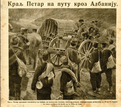 Српска војска, на челу са остарелим краљем Петром и његовим сином, регентом Александром, стигла је до албанске јадранске обале почетком 1916. године, одакле је савезничким бродовима пребацивана на Крф. Цивили су пребацивани и у Бизерту, луку у француском Тунису.