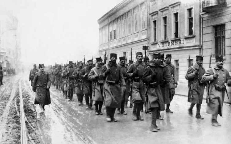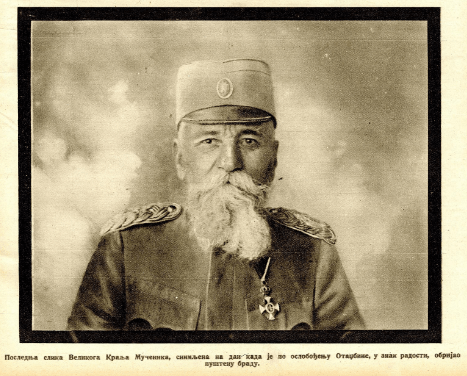 Грађани Загреба дочекују српску војску која са војном музиком пролази улицама града. Фотографисао Риста Марјановић новембра 1918. године.Краљ Петар Карађорђевић на крају рата
