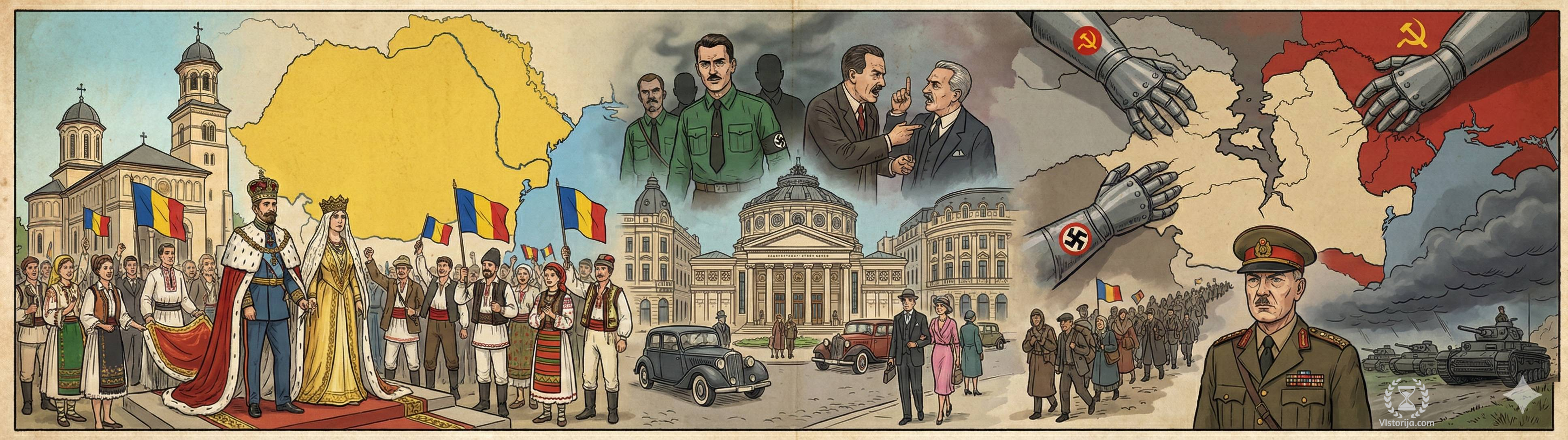 Румунија је из Првог светског рата изашла као један од највећих победника, удвостручивши своју територију и становништво припајањем Трансилваније, Буковине, делова Баната и Бесарабије. Тако је створена Велика Румунија. Међутим, новонастала држава суочила се с проблемима интеграције огромних нових територија, великим уделом националних мањина (28%) и наглим преласком из парламентарне монархије у ауторитарни систем.… Read More Румунија у међуратном периоду
