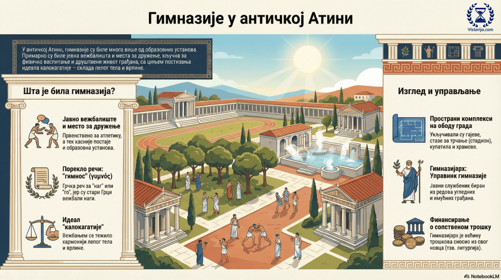 У античкој Атини (и Грчкој) гимназије су биле јавна вежбалишта, намењена дружењу.