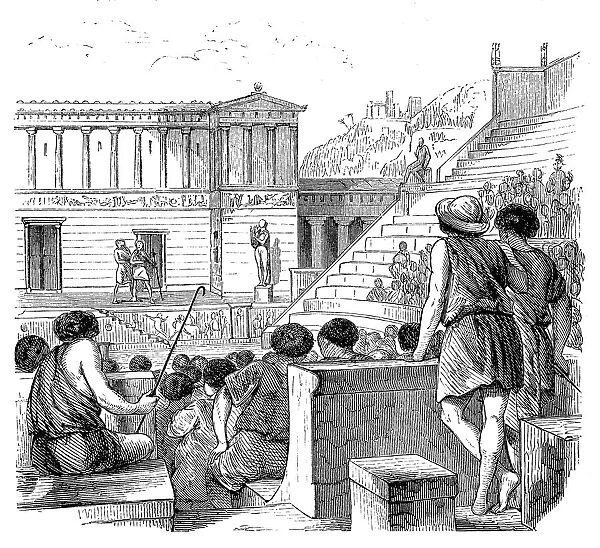 Позориште је настало у VI веку у Атини, где се у V веку чак и плаћало грађанима да га посећују. Теорикон је био новац издвајан у те сврхе. Хорег је био богати грађанин који је имао дужност да представе организује и финансира. Позоришне представе су најпре извођене на светковинама у част бога Диониса. Писци трагедија су се такмичили за награде. Глумци су били искључиво мушкарци и носили су маске. У античким представама учествовали су и хорови, којима су временом придодати и, најпре један, па више глумаца, чиме је настало позориште. Позоришне представе су до краја античке историје извођене у оквиру религијских светковина. Најчувеније позориште у античкој Грчкој налазило се у Епидаурусу и може се посетити и данас. Чувени атински трагичари били су Есхил (Оковани Прометеј, Персијанци), Софокле (Антигона, Краљ Едип) и Еурипид (Жабе, Жене у народној скупштини). Сви они су живели у V веку пре наше ере.