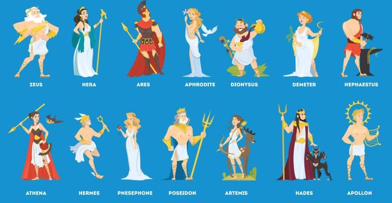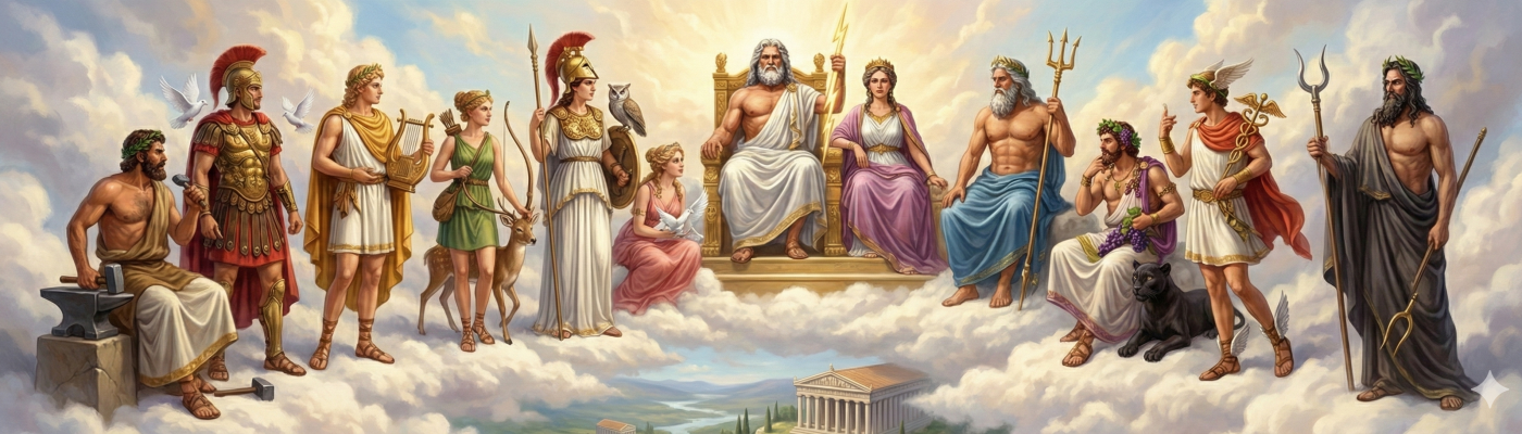 Уз споменуте главне постојала су још по три мушка и женска божанства, која су употпуњавала грчки пантеон (у овом смислу скуп свих богова једне многобожачке религије, а иначе и, у буквалном значењу, храм посвећен свим боговима). Артемида, сестра-близнакиња Аполона, била је богиња-девица, богиња лова, повезана са простором ван града, као што је шума. Штитила је порођаје и рођења. Богиња телесне љубави и стварања била је Афродита. Представља љубав изван брака, за разлику од Хере. Са плодношћу у природи повезане су Деметра и њена ћерка Персефона.