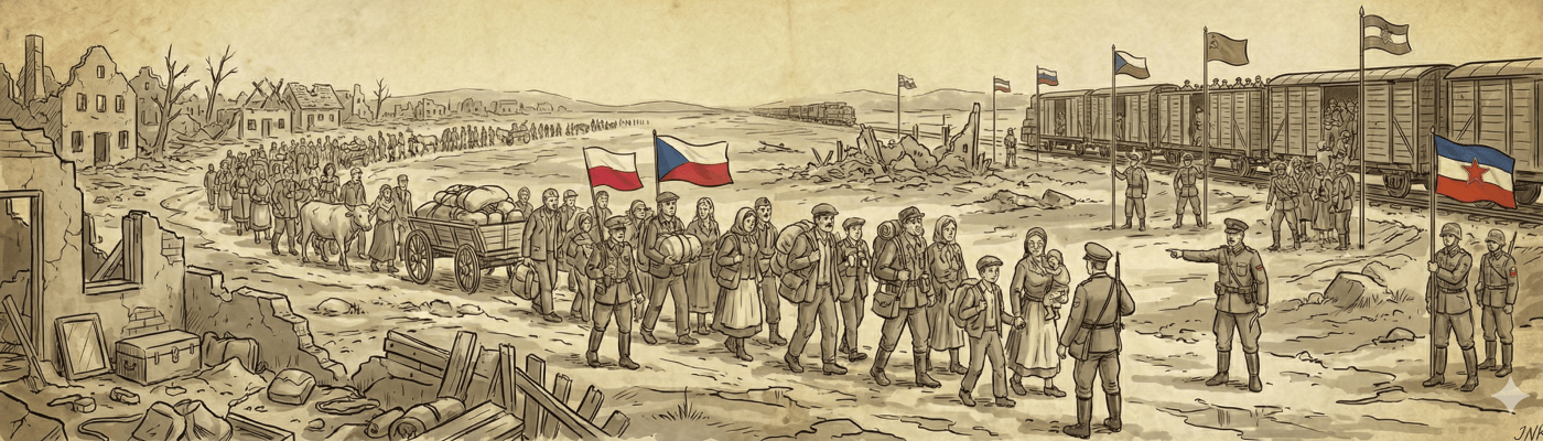 По завршетку Првог светског рата границе су се стварале и прилагођавале, али је становништво углавном остајало живети на својој дедовини. Након 1945. догодило се управо супротно – са једним већим изузетком, границе су углавном остале нетакнуте, док су се уместо њих премештали људи. Западне политичке вође су сматрале да је подбацила Лига народа, као и неки мање важни чланови Версајског уговора, и да би било погрешно покушати их оживети. Због тога су врло лако пристајали на пресељење становништва. Ако се преживелим мањинама из централне и источне Европе није могла обезбедити ефикасна међународна заштита, онда је исто тако добро преселити их у прикладнија места становања. Појам „етничко чишћење“ у то доба још није заживео, али стварност је била потпуно жива – и ничим није подстакла буђење општег негодовања или нелагоде.